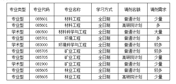 因我院材料工程(085601)、矿业工程(085705)、林业工程(085605)专业的招生指标有普通计划和高研院计划,因此,报考以上专业的所有调剂考生通过复试资格审查后,在复试前必须填写提交一份《培养计划选择意向表》和承诺书(见附件2和附件3)。