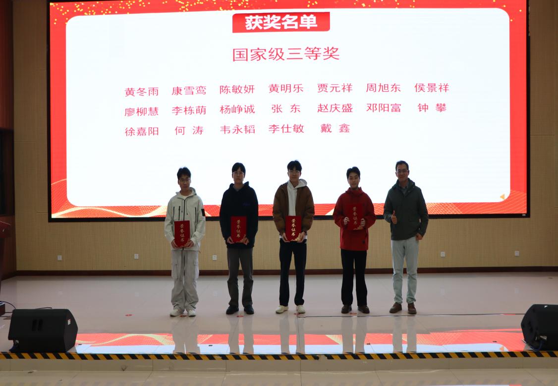 梁宇彬老师为第十二届“挑战杯”广西大学生课外学术作品竞赛获奖学生颁奖