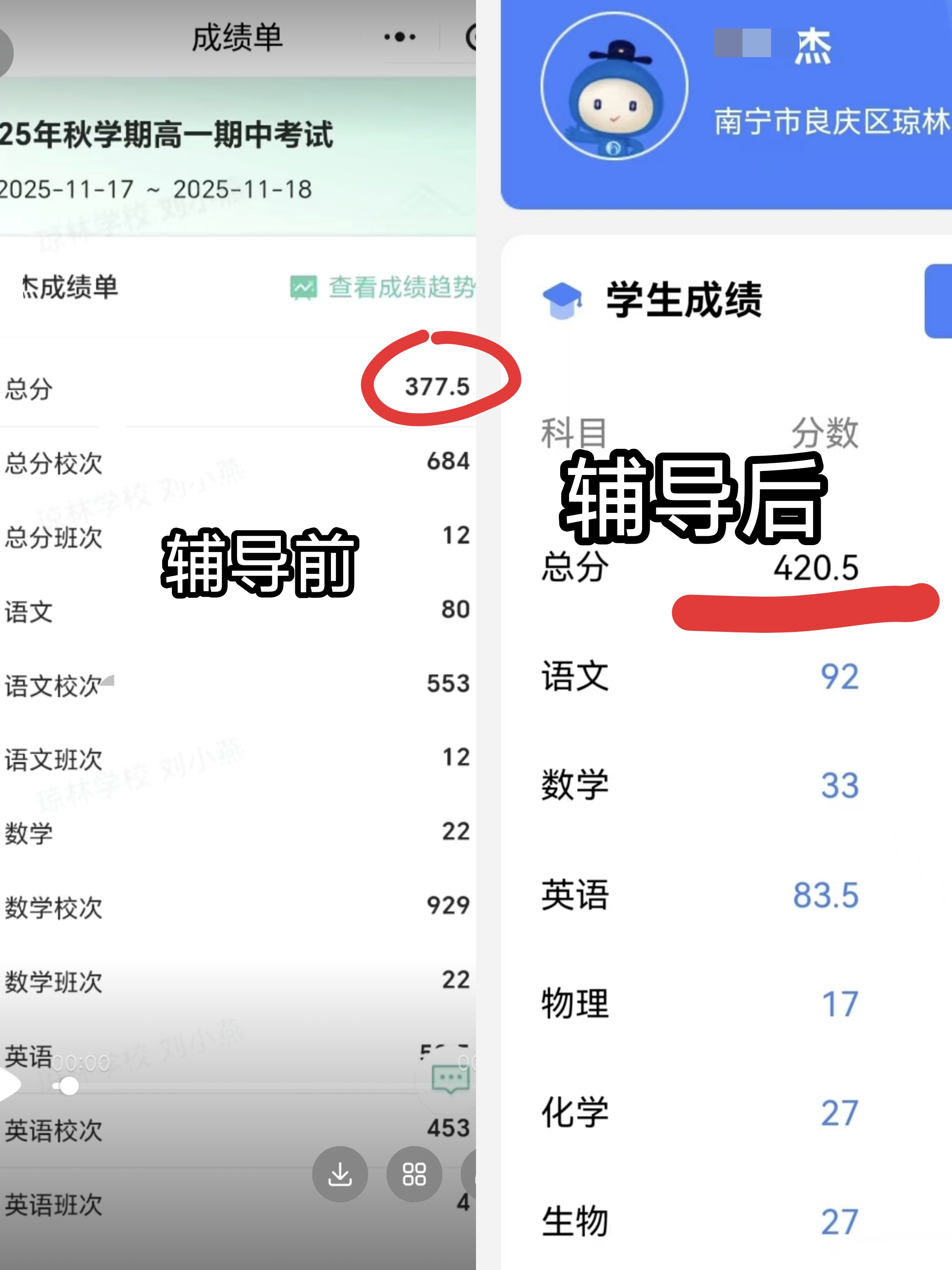 期末考试成绩揭晓时,小杰第一时间向志愿者分享了喜悦:英语成绩由50多分提升至80余分,总分也突破400分大关。更令人欣慰的,是他心态的积极转变。小杰的母亲感慨道:“孩子不仅学习进步了,整个人也变得阳光开朗。以前周末总抱着手机,现在会主动背单词,遇到不懂的也知道主动请教。真的很感谢两位大学生老师,他们给孩子的帮助太大了!”